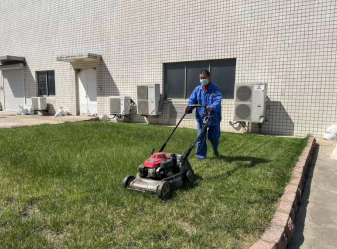 項目保環(huán)境工作人員每天認真完成環(huán)境清潔、綠化養護工作任務(wù),認真執行每日徹底消毒消殺工作,協(xié)助餐廳洗涮;項目綠化工作崗,為了防止廠(chǎng)區草坪生長(cháng)導致開(kāi)花結子,繼續堅守工作崗位,保證每天修剪進(jìn)度不受疫情影響。
