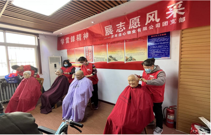 志愿者們?yōu)槔先藙兯?、與老人們進(jìn)行“貼心互動(dòng)”,給老人理發(fā)、打掃衛生,整理衣物。老人們滿(mǎn)臉都是笑容,和志愿者們嘮著(zhù)家常,言語(yǔ)間透露著(zhù)滿(mǎn)滿(mǎn)的幸福。明湖社區王秀紅書(shū)記向濟南連心物業(yè)有限公司表示感謝,感謝連心物業(yè)對老人們的關(guān)心與關(guān)愛(ài),并希望以后創(chuàng )造機會(huì )多互動(dòng)。