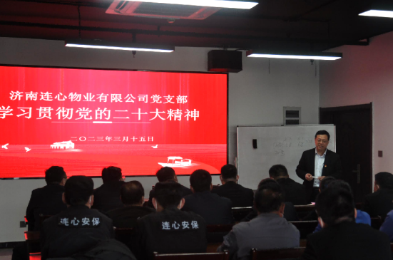 “踔厲奮發(fā)新征程 勇毅前行向復興”!連心物業(yè)黨支部書(shū)記、董事長(cháng)王宏勇表示:我們要認真學(xué)習貫徹黨的二十大精神,從政治高度把連心物業(yè)的服務(wù)做好。連心物業(yè)始終站在“服務(wù)講政治、做事講大局、工作講標準、管理講科學(xué)、目標講極致”的“服務(wù)五講”政治高度提高物業(yè)服務(wù)質(zhì)量,以實(shí)際行動(dòng)踐行“為連心立本、為物業(yè)立志、為民企立言”的企業(yè)精神,奮力譜寫(xiě)連心物業(yè)發(fā)展新篇章,為實(shí)現“科創(chuàng )濟南、智造濟南、文化濟南、生態(tài)濟南、康養濟南”做出新的更大的貢獻。