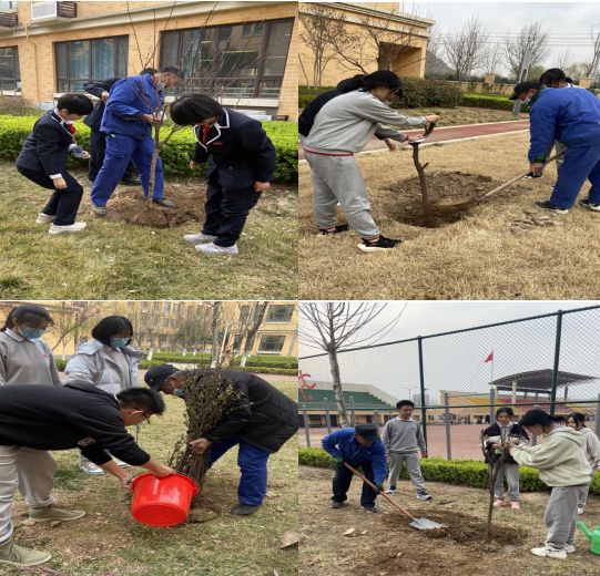 學(xué)生發(fā)展部、各級部對學(xué)生進(jìn)行勞動(dòng)安全教育,讓學(xué)生在安全的環(huán)境中感受勞動(dòng)的快樂(lè ),連心物業(yè)項目經(jīng)理王林林在植樹(shù)活動(dòng)前進(jìn)行種植講解,讓學(xué)生更快地熟知植樹(shù)要點(diǎn);綠化人員提供綠化技術(shù)指導,使學(xué)生更有效地種植好樹(shù)苗,所有綠化工做好服務(wù)保障工作?;顒?dòng)現場(chǎng)學(xué)生們在學(xué)校老師和連心物業(yè)綠化團隊的帶領(lǐng)下分工井然有序。通過(guò)大家的共同努力,種植山杏、龍柱碧桃、美人梅、貼梗海棠、金銀木、臘梅等共計80顆樹(shù)苗。
