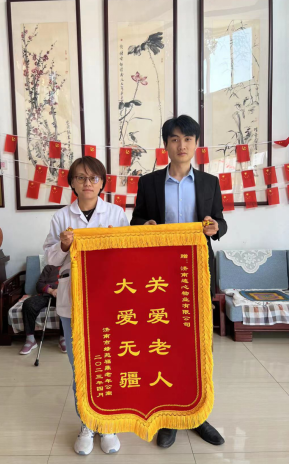 2023年5月9日,綠苑福鼎老年公寓蘇芬主任將題有“關(guān)愛(ài)老人 大愛(ài)無(wú)疆”的大紅錦旗送到濟南連心物業(yè)有限公司團支部,對連心物業(yè)團支部愛(ài)老、敬老的慰問(wèn)活動(dòng)表示感謝。
