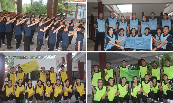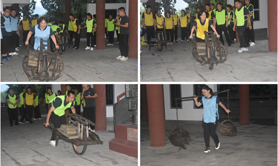 西柏坡紀念館參觀(guān)后,我們進(jìn)行了“溝通凝聚、熔煉團隊”的拓展訓練環(huán)節。首先以“破冰之旅”—“創(chuàng )建小組團隊”、“團隊展示”等拉開(kāi)帷幕,接下來(lái)的團建項目以“水果消消樂(lè )、獨輪車(chē)運送軍糧、扁擔挑糧送戰場(chǎng)等拓展”為主題,進(jìn)行活動(dòng)名次爭奪。拓展活動(dòng)的各項任務(wù)完成需要隊友們分工協(xié)作、精誠團結,對于速度和質(zhì)量有很高的要求,同時(shí)體現了各隊相互之間的有效溝通和團隊凝聚力。
