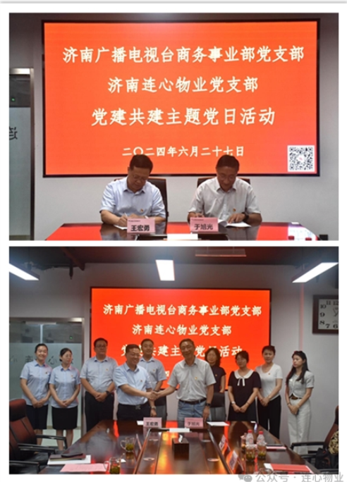 濟南廣播電視臺商務(wù)事業(yè)部黨支部和濟南連心物業(yè)黨支部分別介紹了各自支部的黨建工作開(kāi)展情況。濟南廣播電視臺商務(wù)事業(yè)部黨支部以其媒體融合的優(yōu)勢,積極探索黨建與媒體融合的新模式,通過(guò)多樣化的媒體形式宣傳黨的路線(xiàn)、方針、政策,提高了黨員的思想政治素質(zhì)和業(yè)務(wù)能力。濟南連心物業(yè)黨支部書(shū)記王宏勇介紹支部黨建工作情況,結合自身物業(yè)服務(wù)的特點(diǎn),將黨建工作融入日常服務(wù)中,提高了服務(wù)質(zhì)量,增強了員工的凝聚力和向心力。活動(dòng)中,雙方簽訂了黨建共建協(xié)議,明確了未來(lái)合作的方向和目標。