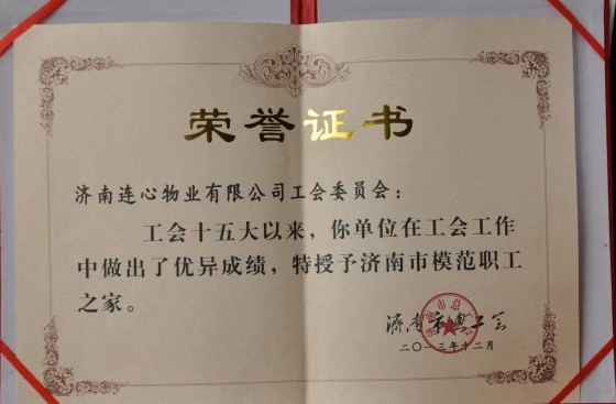 濟南連心物業(yè)有限公司在濟南市總工會(huì )的領(lǐng)導下,以鄧小平理論、“三個(gè)代表”重要思想、科學(xué)發(fā)展觀(guān)為指導,堅定不移地走中國特色社會(huì )主義工會(huì )發(fā)展道路,緊緊圍繞全市工作大局,按照“五個(gè)以”總體思路和“十個(gè)同時(shí)十個(gè)注重”工作要求,切實(shí)履行各項職能,為“加快科學(xué)發(fā)展、建設美麗泉城”做出了積極貢獻。