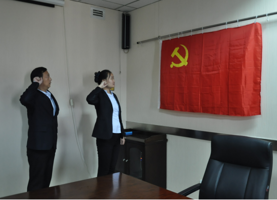 吳建軍同志轉正宣誓、組織委員杜倩倩同志領(lǐng)誓