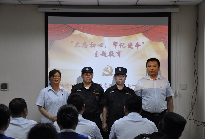 濟南連心物業(yè)有限公司黨支部副書(shū)記、總經(jīng)理戚圣輝與優(yōu)秀黨員合影留念